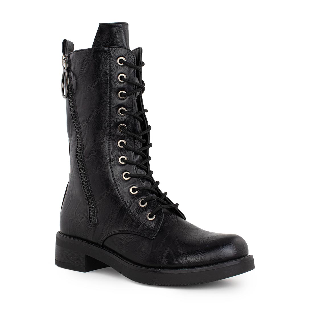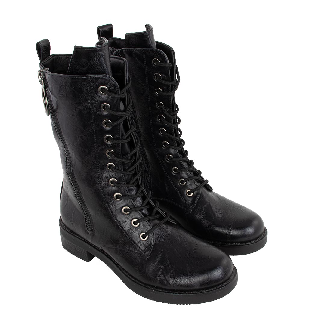Γυναικείο μοντέρνο μποτάκι bike με φερμουάρ στο πλάι