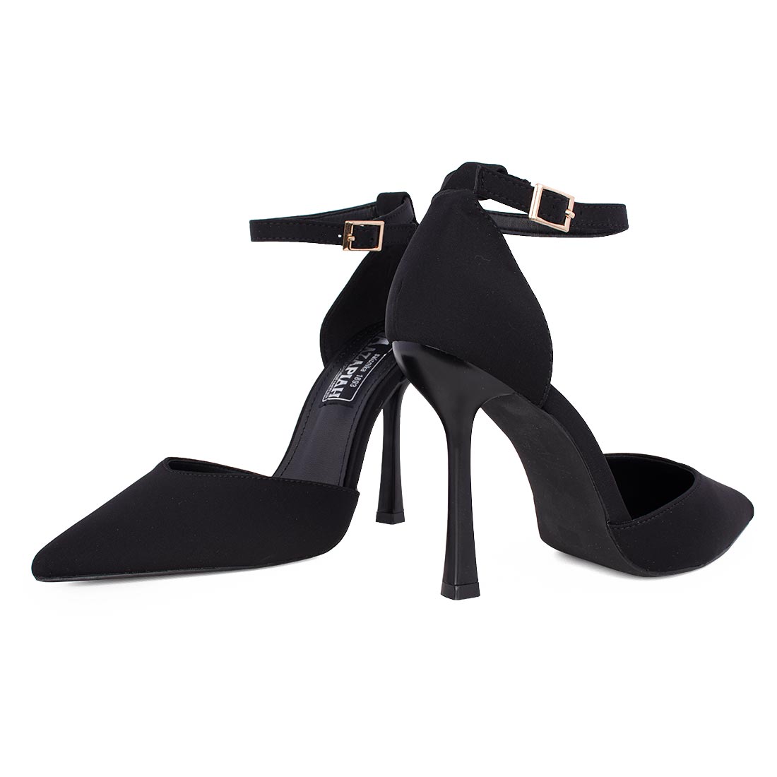Mυτερή γόβα σε μαύρο σατέν με λουράκι στον αστράγαλο ALICIA