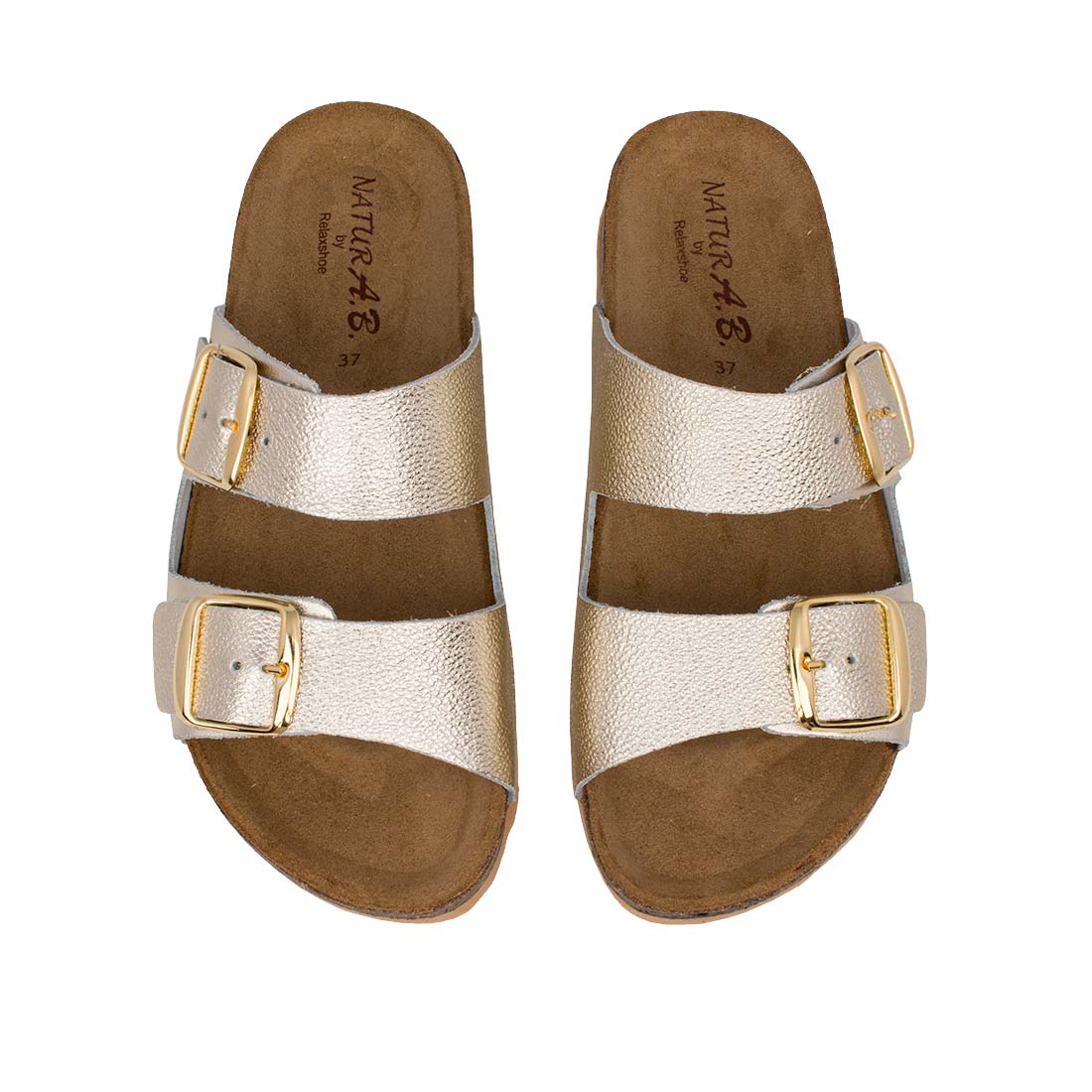 Aνατομική δερμάτινη παντόφλα με 2 τόκες NATURE Χρυσό