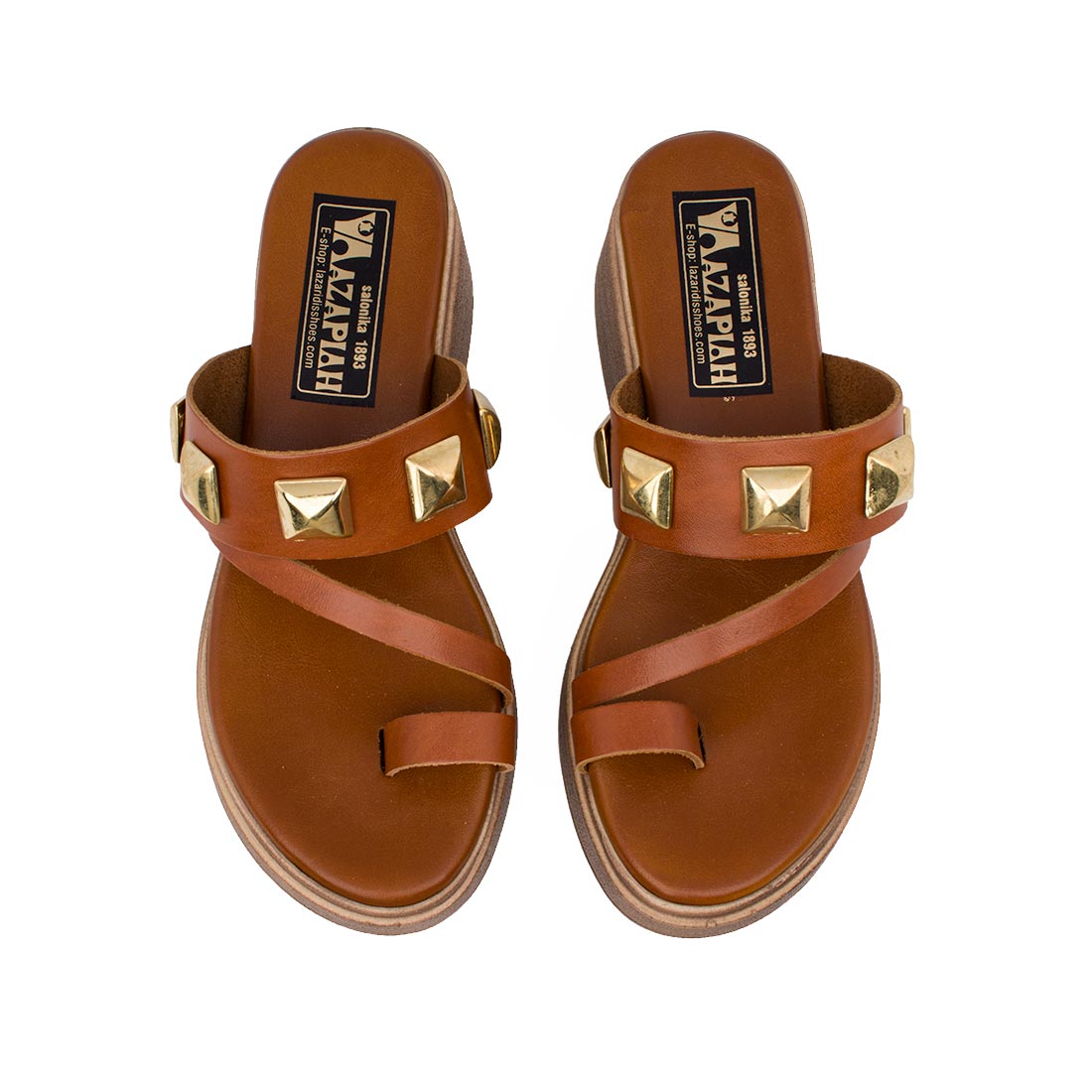 Χειροποίητη δερμάτινη παντόφλα με δάχτυλο και χρυσά διακοσμητικά τρουκς