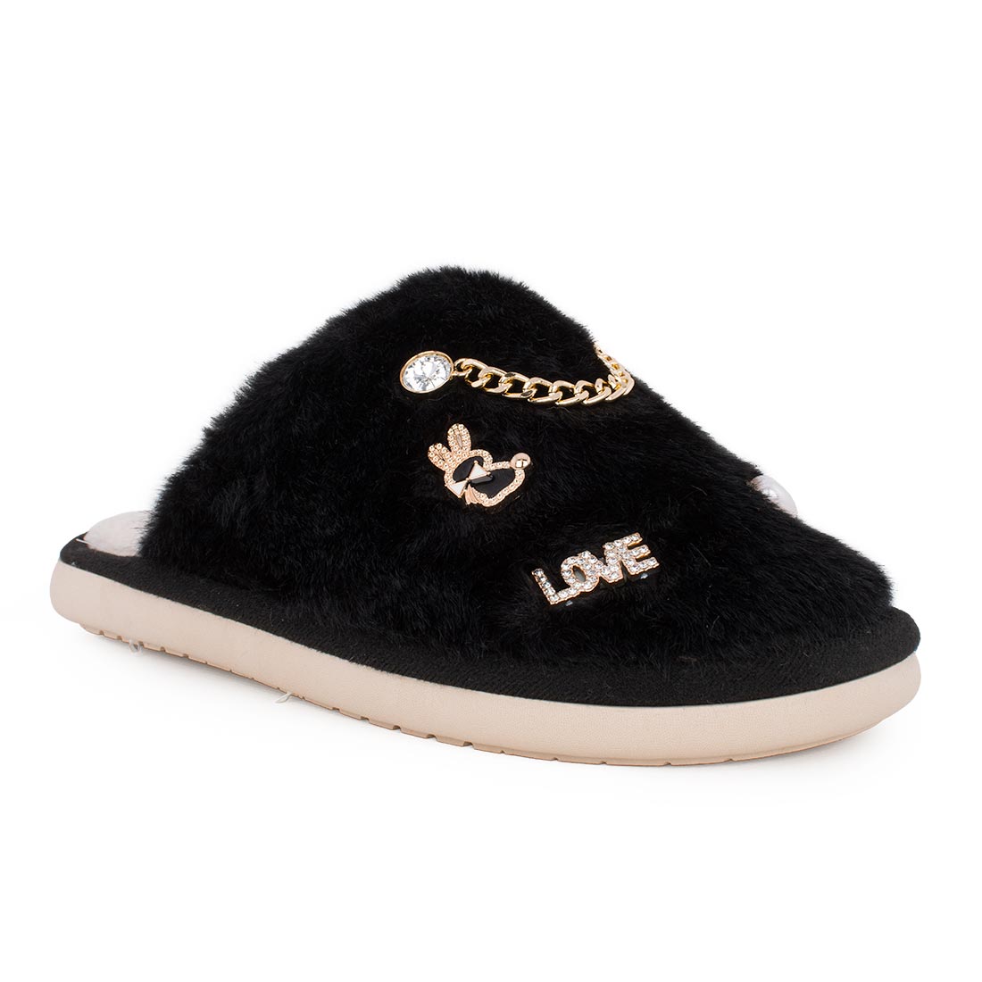 Μοντέρνα ζεστή παντόφλα με διακοσμητικά JOY Μαύρο