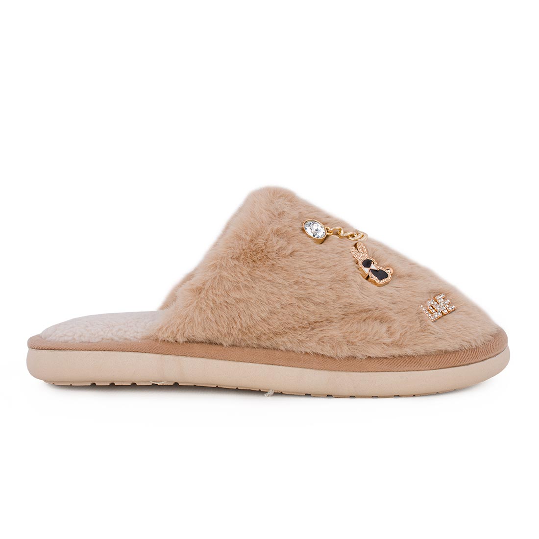 Μοντέρνα ζεστή παντόφλα με διακοσμητικά JOY Mπεζ