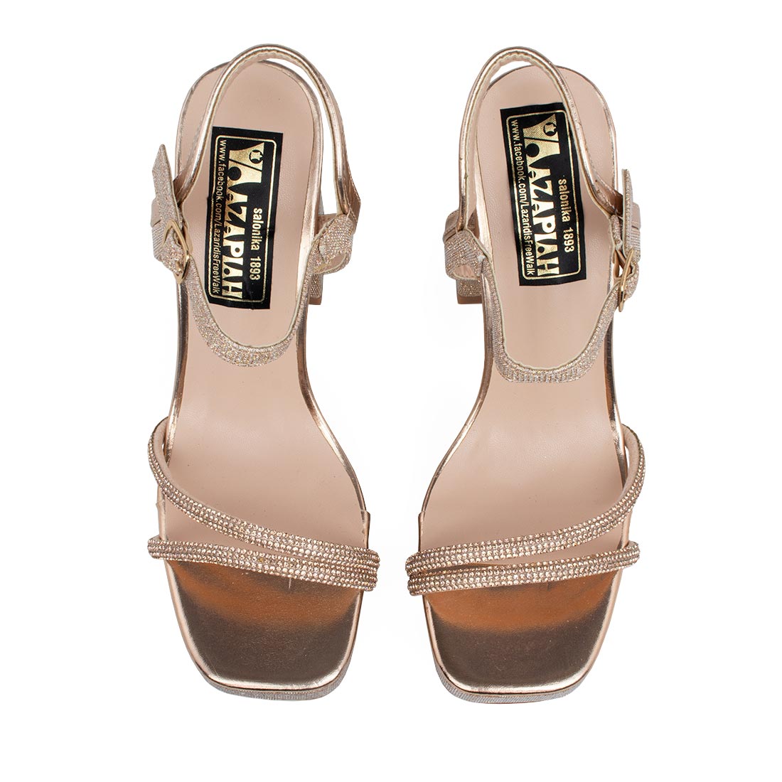 Έχει 2 λουράκια με στρας μπροστά και γκλίτερ στο τακούνι και στη φιάπα μπροστά