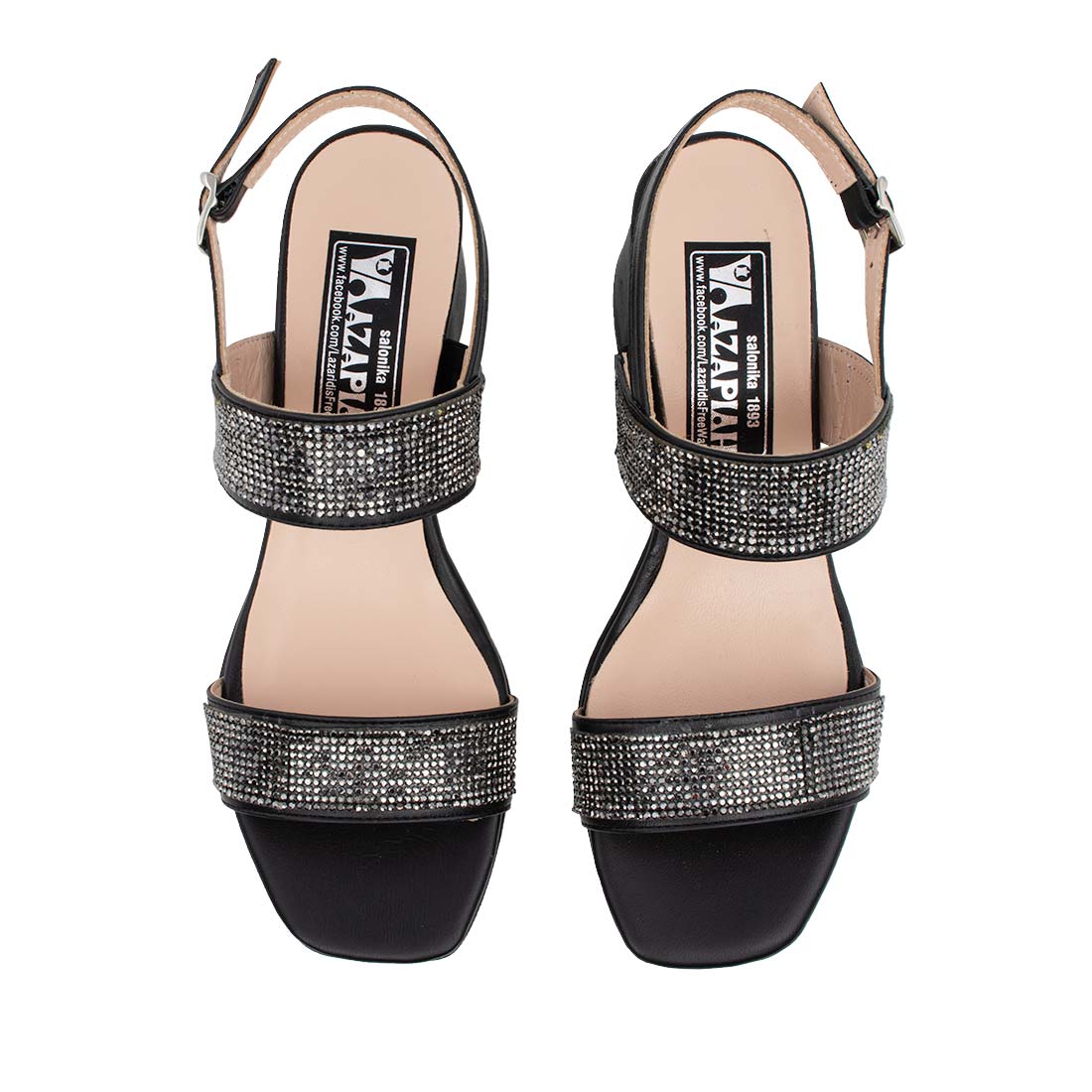 Χειροποίητο δερμάτινο πέδιλο ελληνικής κατασκευής με χαμηλό τακούνι GLAMOROUS Μαύρο