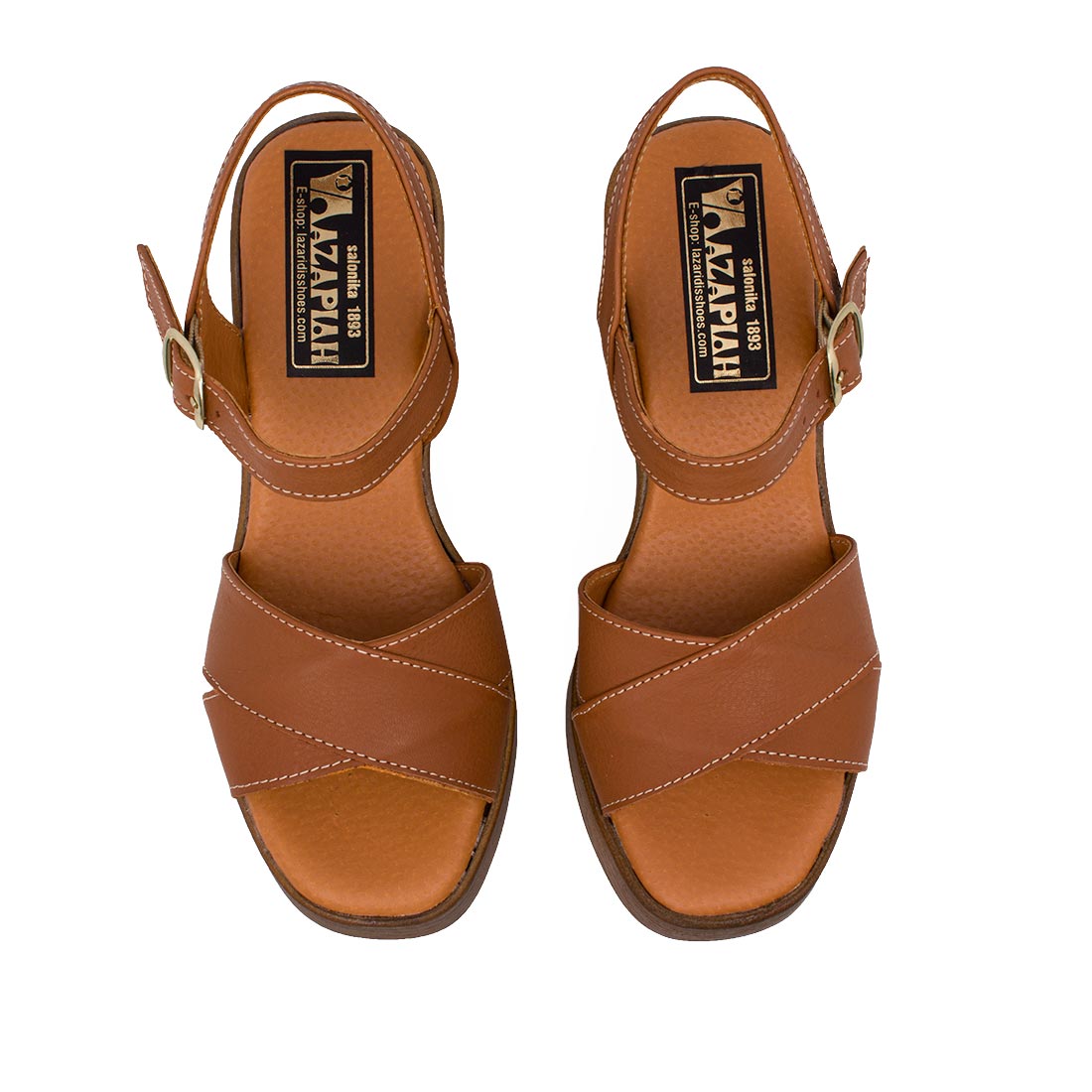 Xειροποίητο ελαφρύ δερμάτινο πέδιλο ελληνικής κατασκευής με χοντρό σταθερό τακούνι THALIA Ταμπά