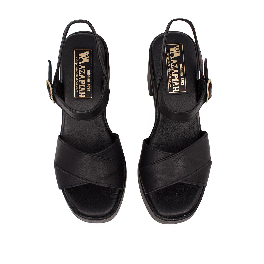 Xειροποίητο ελαφρύ δερμάτινο πέδιλο ελληνικής κατασκευής με χοντρό σταθερό τακούνι THALIA
