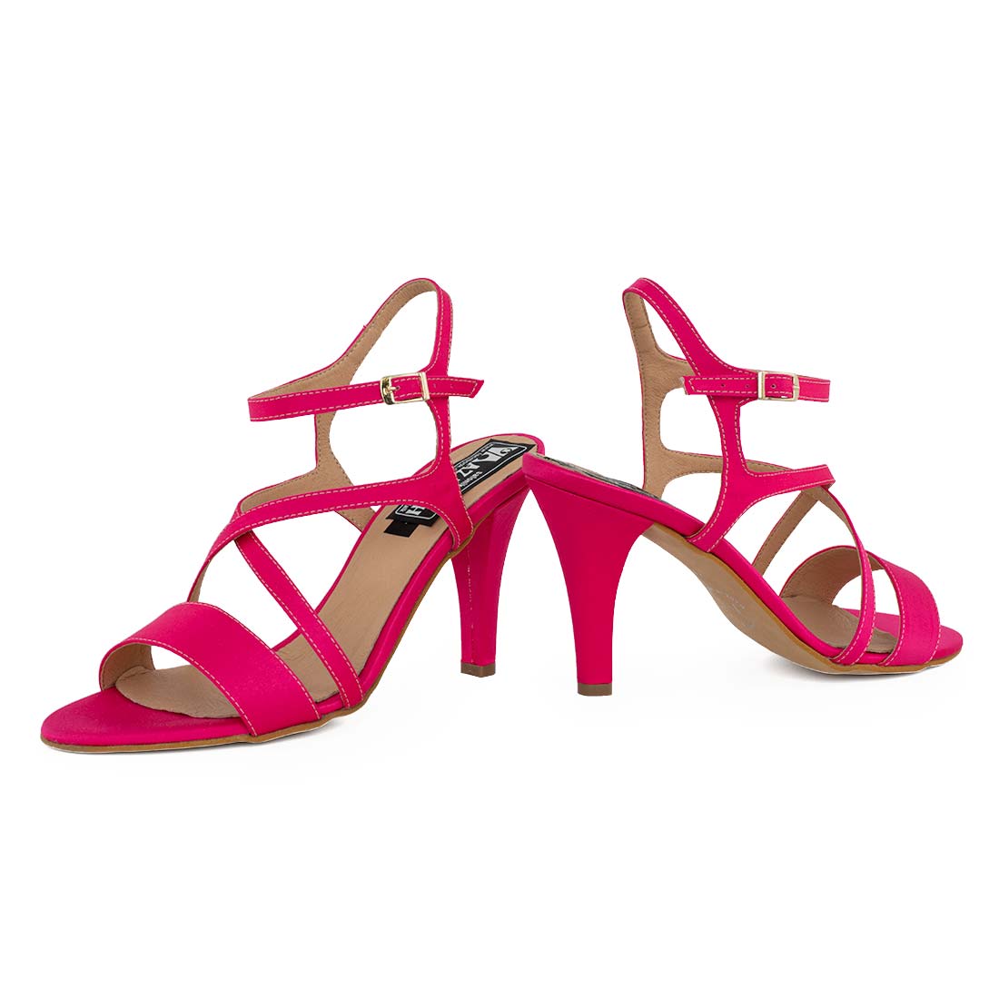 Χειροποίητο πέδιλο ελληνικής κατασκευής με λεπτό σταθερό ντυμένο τακούνι