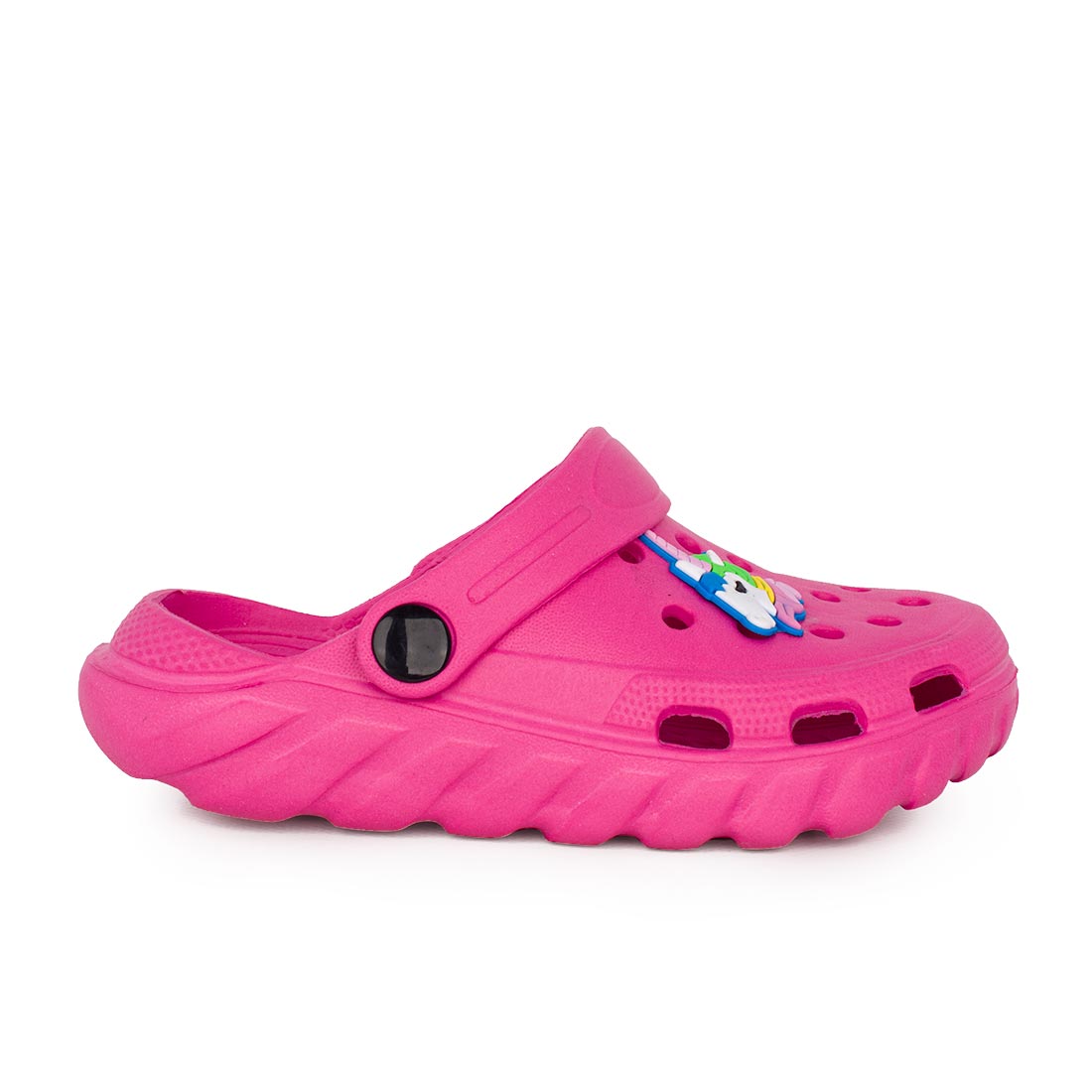 Ελαφρύ παντοφλάκι τύπου crocs με λουράκι που ανεβοκατεβαίνει και διακοσμητικό μονόκερω στο πάνω μέρος