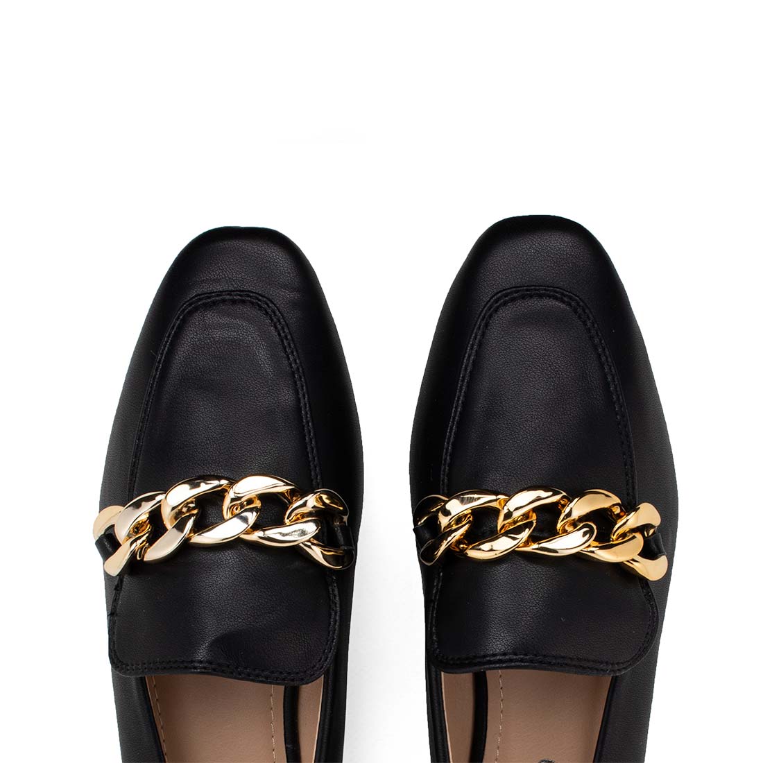 Χειροποίητο μοντέρνο μοκασίνι ελληνικής κατασκευής με μαλακό πάτημα και χρυσή διακοσμητική αλυσίδα